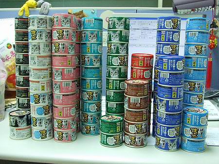 這是阿娟幫喵屋採買回來的罐頭小山.....